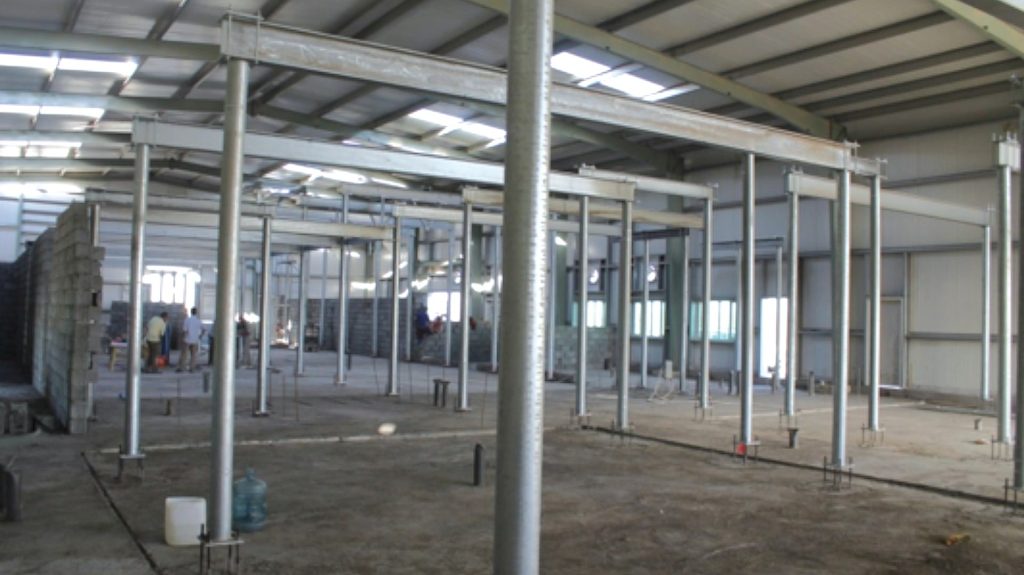 Estructura portante del riel compuesta por vigas y columnas galvanizadas en caliente